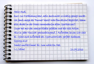 Die erste Fortbildung des neuen Schuljahres im Programm für interdisziplinäre Fortbildung (Pfif) im Sprachheilzentrum Ravensburg fand mit Diplomsportlehrer Andreas Güttner unter dem Namen ‚Burner Gladiators – Kampfspiele für groß und klein‘ statt. Lehrerinnen, Lehrer und Erzieherinnen spielten in 4 intensiven Stunden einfache Kampfspiele, die sich im Klassenzimmer machen lassen, Kampfspiele mit Burner Bats (gepolsterten Schwertern) und auch Gruppenspiele, wie Mini Jugger und Capture the Flag.