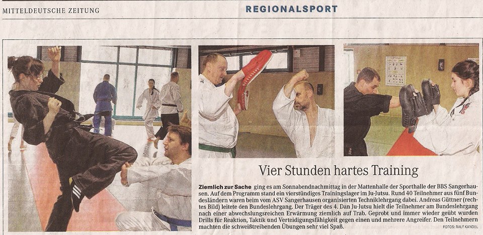 Pressebericht der Mitteldeutschen Zeitung vom Ju Jutsu Bundeslehrgang Technik vom 06. April 2013 mit Andy Güttner und Sabrina Merseburg ju-jutsu-sangerhausen.de |